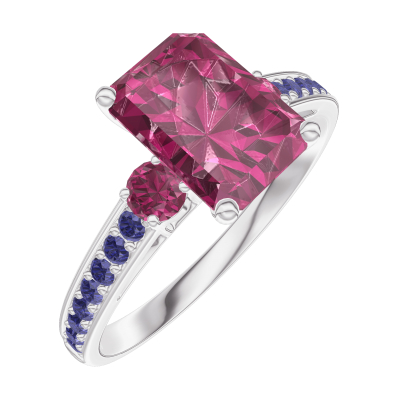 « L'ATELIER » NR. 168056Ring Weißgold 375/-(9Kt) - Rubin Rechteckig 1 Karat - Seitliche Steine Rubin - Fassung Blauer Saphir 4.6 (5)