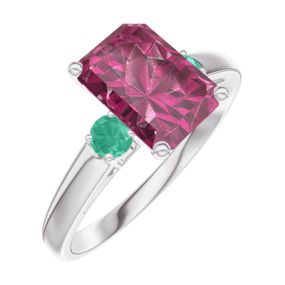 « L'ATELIER » Nº168084Ring Weißgold 375/-(9Kt) - Rubin Rechteckig 1 Karat - Seitliche Steine Smaragd 4.6 (5)