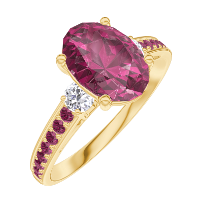 « L'ATELIER » NR. 168129Ring Gelbgold 750/-(18Kt) - Rubin Oval 1 Karat - Seitliche Steine Diamant - Fassung Rubin 4.7