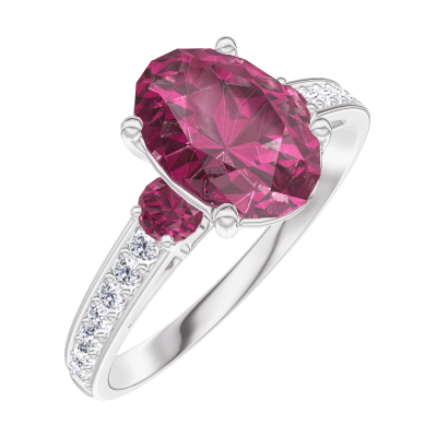 « L'ATELIER » NR. 168147Ring Weißgold 750/-(18Kt) - Rubin Oval 1 Karat - Seitliche Steine Rubin - Fassung Diamant 4.7