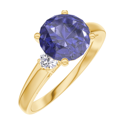 « L'ATELIER » NR. 168422Ring Gelbgold 375/-(9Kt) - Blauer Saphir rund 1 Karat - Seitliche Steine Diamant 4.8