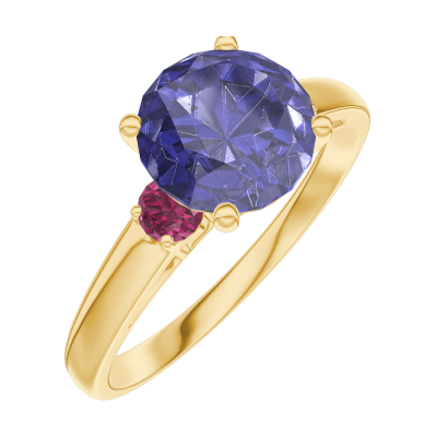 « L'ATELIER » NR. 168442Ring Gelbgold 375/-(9Kt) - Blauer Saphir rund 1 Karat - Seitliche Steine Rubin 4.8 (14)