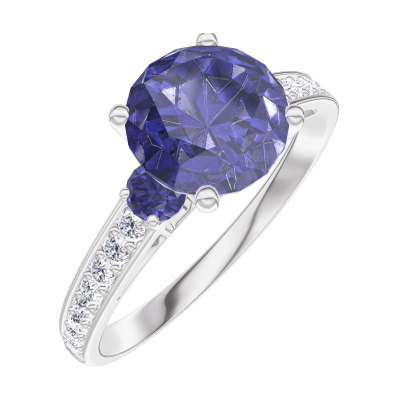 « L'ATELIER » Nº168468Ring Weißgold 375/-(9Kt) - Blauer Saphir rund 1 Karat - Seitliche Steine Blauer Saphir - Fassung Diamant 4.7