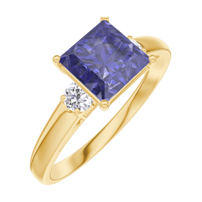 « L'ATELIER » NR. 168521Ring Gelbgold 750/-(18Kt) - Blauer Saphir Prinzess 1 Karat - Seitliche Steine Diamant