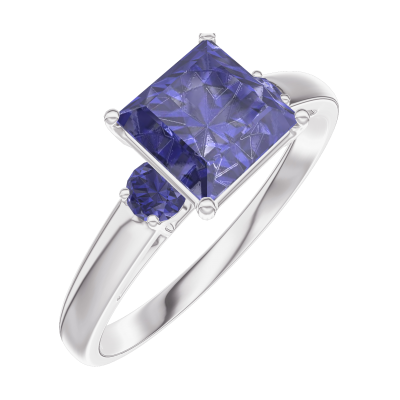 « L'ATELIER » NR. 168564Ring Weißgold 375/-(9Kt) - Blauer Saphir Prinzess 1 Karat - Seitliche Steine Blauer Saphir