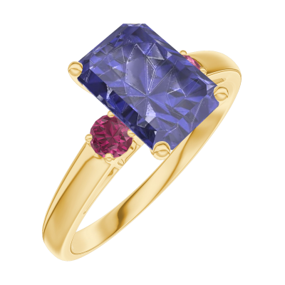 « L'ATELIER » NR. 168641Ring Gelbgold 750/-(18Kt) - Blauer Saphir Rechteckig 1 Karat - Seitliche Steine Rubin 4.6