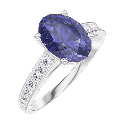 « L'ATELIER » NR. 168708Ring Weißgold 375/-(9Kt) - Blauer Saphir Oval 1 Karat - Fassung Diamant 4.7 (9)