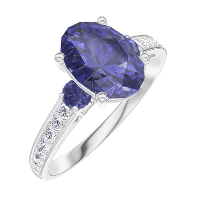 « L'ATELIER » NR. 168767Ring Weißgold 750/-(18Kt) - Blauer Saphir Oval 1 Karat - Seitliche Steine Blauer Saphir - Fassung Diamant 4.7
