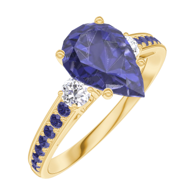 « L'ATELIER » Nº168833Ring Gelbgold 750/-(18Kt) - Blauer Saphir Tropfen 1 Karat - Seitliche Steine Diamant - Fassung Blauer Saphir