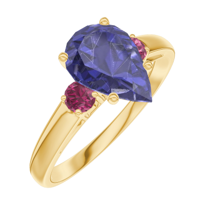 « L'ATELIER » NR. 168842Ring Gelbgold 375/-(9Kt) - Blauer Saphir Tropfen 1 Karat - Seitliche Steine Rubin