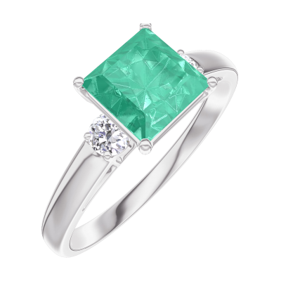 « L'ATELIER » NR. 169124Ring Weißgold 375/-(9Kt) - Smaragd Prinzess 1 Karat - Seitliche Steine Diamant