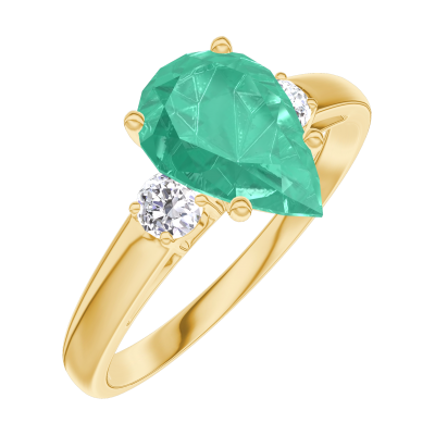 « L'ATELIER » Nº169421Ring Gelbgold 750/-(18Kt) - Smaragd Tropfen 1 Karat - Seitliche Steine Diamant