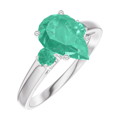 « L'ATELIER » NR. 169484Ring Weißgold 375/-(9Kt) - Smaragd Tropfen 1 Karat - Seitliche Steine Smaragd