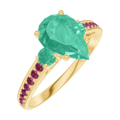 « L'ATELIER » Nº169489Ring Gelbgold 750/-(18Kt) - Smaragd Tropfen 1 Karat - Seitliche Steine Smaragd - Fassung Rubin