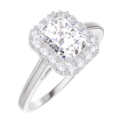 « L'ATELIER » NR. 170099Ring Weißgold 750/-(18Kt) - Diamant Rechteckig 0.5 Karat - Halo Diamant 4.7 (44)