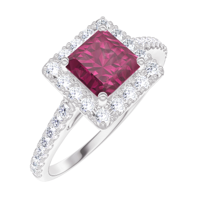 « L'ATELIER » NR. 170343Ring Weißgold 750/-(18Kt) - Rubin Prinzess 0.5 Karat - Halo Diamant - Fassung Diamant 4.1