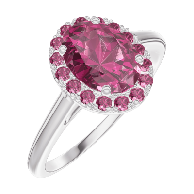 « L'ATELIER » NR. 170452Ring Weißgold 375/-(9Kt) - Rubin Oval 0.5 Karat - Halo Rubin 4.5
