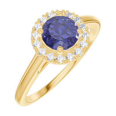 « L'ATELIER » Nº170577Ring Gelbgold 750/-(18Kt) - Blauer Saphir rund 0.5 Karat - Halo Diamant 4.7 (18)