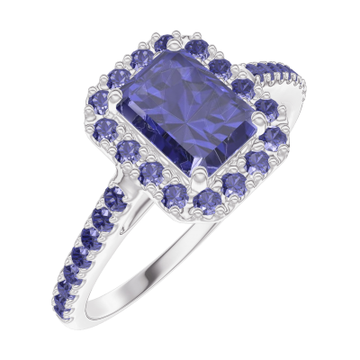 « L'ATELIER » Nº170719Ring Weißgold 750/-(18Kt) - Blauer Saphir Rechteckig 0.5 Karat - Halo Blauer Saphir - Fassung Blauer Saphir 4.7
