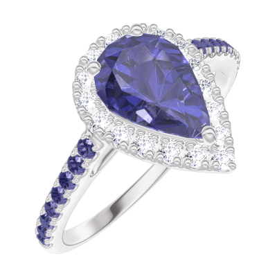 « L'ATELIER » NR. 170784Ring Weißgold 375/-(9Kt) - Blauer Saphir Tropfen 0.5 Karat - Halo Diamant - Fassung Blauer Saphir 4.8