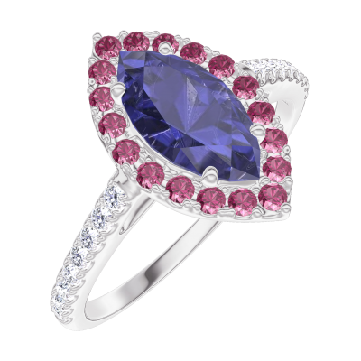 « L'ATELIER » NR. 170839Ring Weißgold 750/-(18Kt) - Blauer Saphir Marquise 0.5 Karat - Halo Rubin - Fassung Diamant