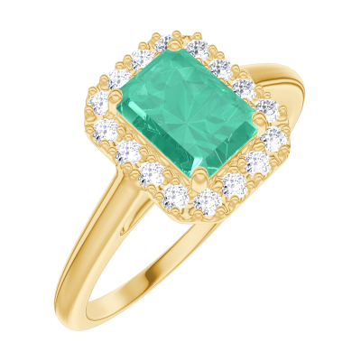 « L'ATELIER » NR. 170961Ring Gelbgold 750/-(18Kt) - Smaragd Rechteckig 0.5 Karat - Halo Diamant 4.7