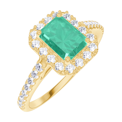 « L'ATELIER » NR. 170966Ring Gelbgold 375/-(9Kt) - Smaragd Rechteckig 0.5 Karat - Halo Diamant - Fassung Diamant 4.7 (44)