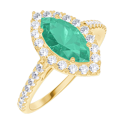 « L'ATELIER » NR. 171110Ring Gelbgold 375/-(9Kt) - Smaragd Marquise 0.5 Karat - Halo Diamant - Fassung Diamant