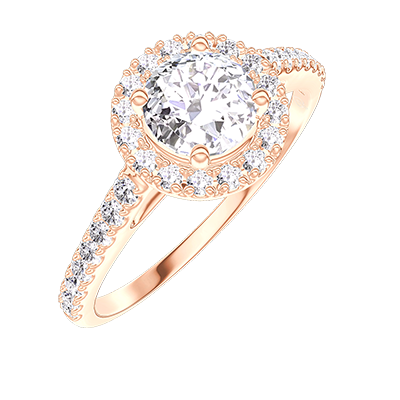 « L'ATELIER » Nº176185Ring Roségold 750/-(18Kt) - Labordiamant rund 0.5 Karat - Halo Labordiamant - Fassung Labordiamant 4.7