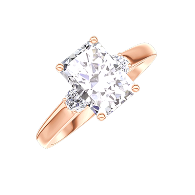 Ring Roségold 750/-(18Kt) - Labordiamant Rechteckig 1 Karat - Seitliche Steine Labordiamant