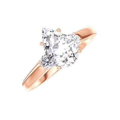 Ring Roségold 750/-(18Kt) - Labordiamant Tropfen 1 Karat - Seitliche Steine Labordiamant