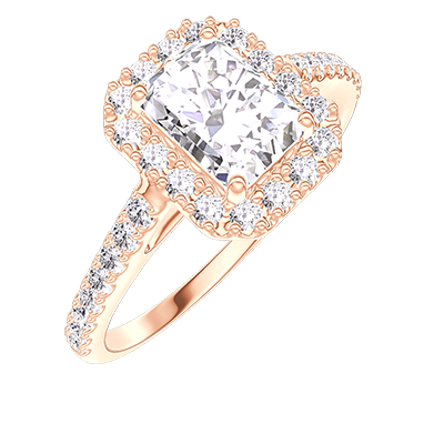 « L'ATELIER » NR. 177389Ring Roségold 375/-(9Kt) - Labordiamant Rechteckig 0.5 Karat - Halo Labordiamant - Fassung Labordiamant 4.7