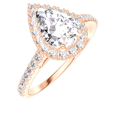 « L'ATELIER » NR. 177436Ring Roségold 750/-(18Kt) - Labordiamant Tropfen 0.5 Karat - Halo Labordiamant - Fassung Labordiamant 4.8