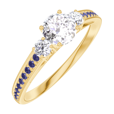 « L'ATELIER » Nº180033Ring Gelbgold 750/-(18Kt) - Labordiamant rund 0.3 Karat - Seitliche Steine Labordiamant - Fassung Blauer Saphir 4.5