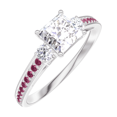 « L'ATELIER » Nº182531Ring Weißgold 750/-(18Kt) - Labordiamant Prinzess 0.5 Karat - Seitliche Steine Labordiamant - Fassung Rubin