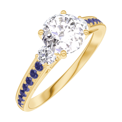 « L'ATELIER » Nº184833Ring Gelbgold 750/-(18Kt) - Labordiamant rund 0.7 Karat - Seitliche Steine Labordiamant - Fassung Blauer Saphir 4.9
