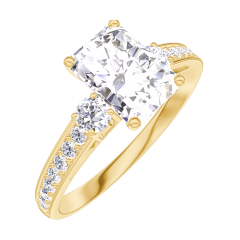 Ring Gelbgold 375/-(9Kt) - Labordiamant Rechteckig 0.7 Karat - Seitliche Steine Labordiamant - Fassung Labordiamant