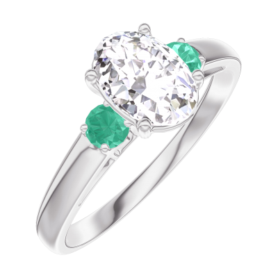« L'ATELIER » NR. 185184Ring Weißgold 375/-(9Kt) - Labordiamant Oval 0.7 Karat - Seitliche Steine Smaragd