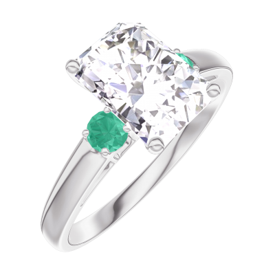 « L'ATELIER » Nº187484Ring Weißgold 375/-(9Kt) - Labordiamant Rechteckig 1 Karat - Seitliche Steine Smaragd 4.6 (5)