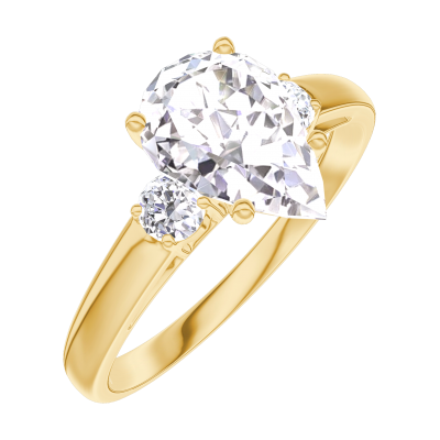« L'ATELIER » NR. 187622Ring Gelbgold 375/-(9Kt) - Labordiamant Tropfen 1 Karat - Seitliche Steine Labordiamant