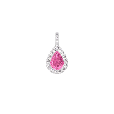 « L'ATELIER » NR. 188613Anhänger Weißgold 375/-(9Kt) - Rosa Saphir Tropfen 0.3 Karat - Halo Diamant - Fassung Diamant - Keine Kette