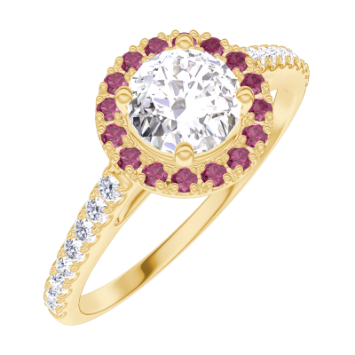 « L'ATELIER » NR. 190022Ring Gelbgold 375/-(9Kt) - Labordiamant rund 0.5 Karat - Halo Rubin - Fassung Labordiamant 4.7