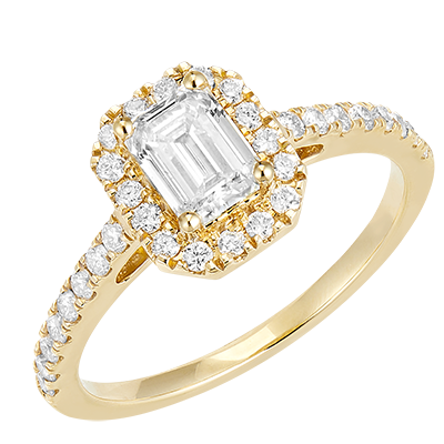 « L'ATELIER » NR. 190102Ring Gelbgold 375/-(9Kt) - Labordiamant Rechteckig 0.5 Karat - Halo Labordiamant - Fassung Labordiamant 4.7