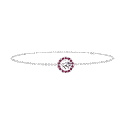 « L'ATELIER » Nº200019Armband Weißgold 750/-(18Kt) - Diamant rund 0.3 Karat - Halo Rubin - Kette Ankerkette 4.7