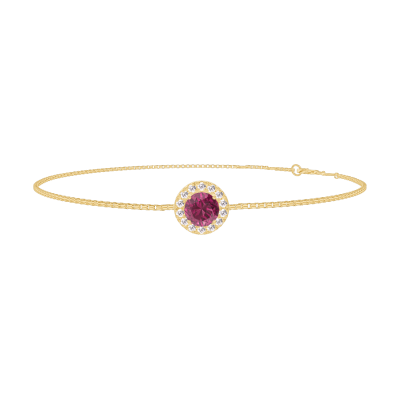 « L'ATELIER » NR. 200397Armband Gelbgold 750/-(18Kt) - Rubin rund 0.3 Karat - Halo Diamant - Kette Venezianerkette 4.7