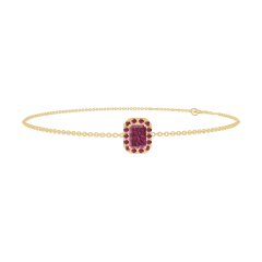 Armband Gelbgold 750/-(18Kt) - Rubin Rechteckig 0.3 Karat - Halo Rubin - Kette Ankerkette