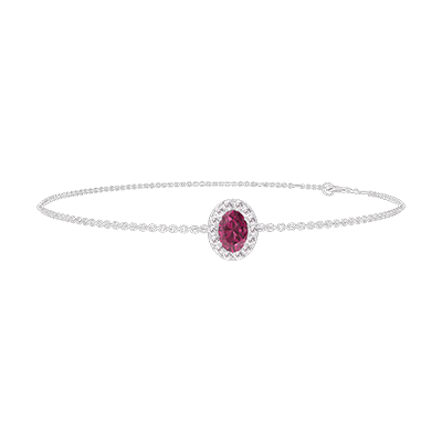 « L'ATELIER » NR. 200491Armband Weißgold 750/-(18Kt) - Rubin Oval 0.3 Karat - Halo Diamant - Kette Ankerkette