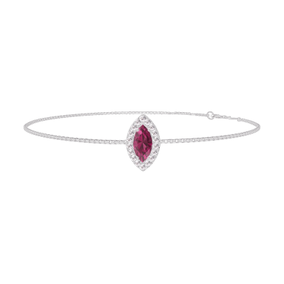 « L'ATELIER » NR. 200560Armband Weißgold 375/-(9Kt) - Rubin Marquise 0.3 Karat - Halo Diamant - Kette Venezianerkette
