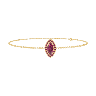 « L'ATELIER » Nº200561Armband Gelbgold 750/-(18Kt) - Rubin Marquise 0.3 Karat - Halo Rubin - Kette Ankerkette