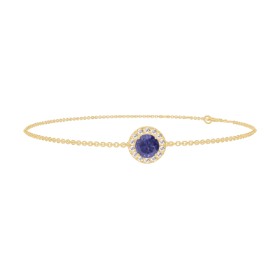 « L'ATELIER » Nº200585Armband Gelbgold 750/-(18Kt) - Blauer Saphir rund 0.3 Karat - Halo Diamant - Kette Ankerkette 4.7 (3)